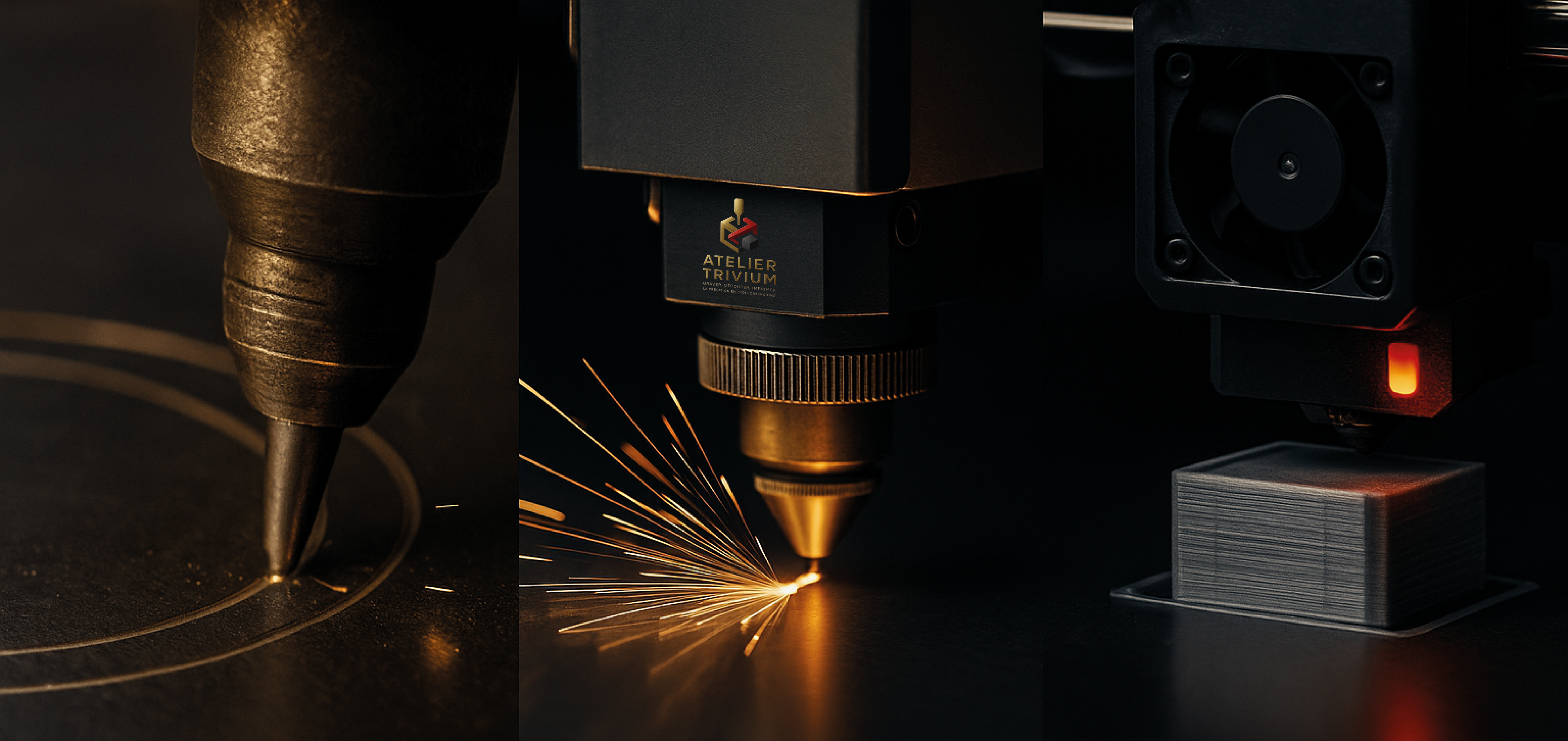Par la gravure, la surface se transforme en mémoire : le métal, le bois ou l’acrylique gardent la trace du geste et de la lumière.